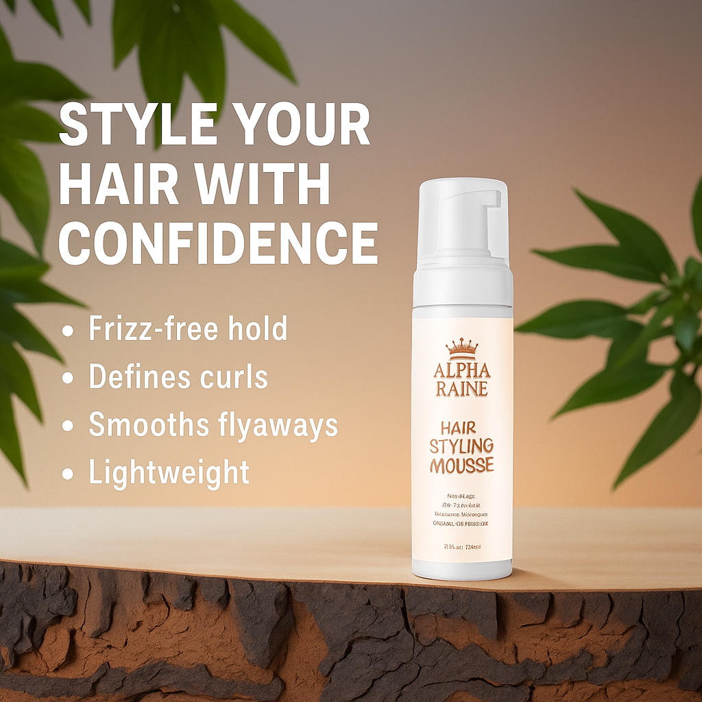 Elevate your hair game with Alpha Raine’s lightweight, nourishing mousse. Designed for all hair types—whether curly, straight, wavy, or braided—this mousse delivers the perfect balance of hold, shine, and hydration.