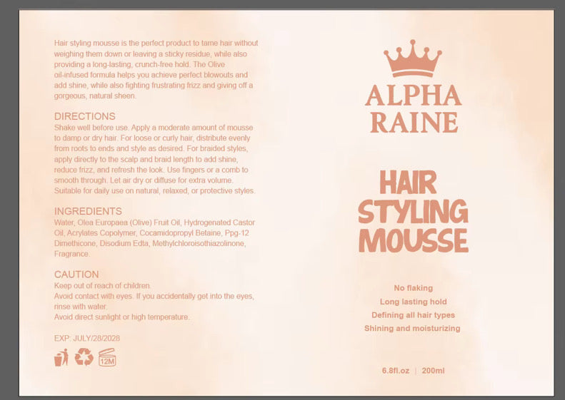 Perfect for wash-and-go styles, blowouts, protective styles, or refreshing curls, Alpha Raine Hair Mousse lets you rule your look with confidence.